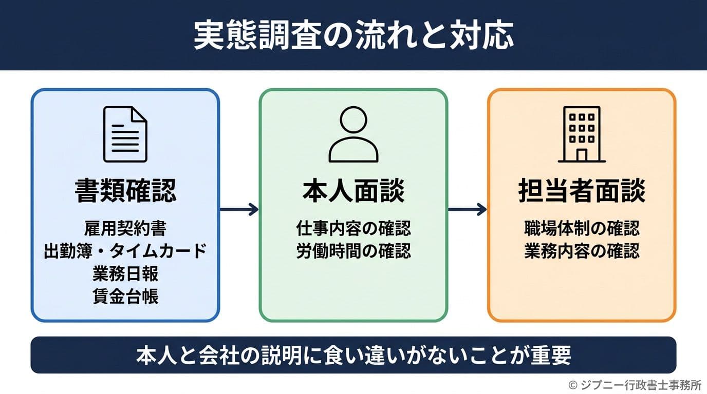 実態調査が来てから慌てるのではなく、採用時点から「実態と資格該当性の整合性」を取れる体制を構築しておくことが最も確実な対応です。
