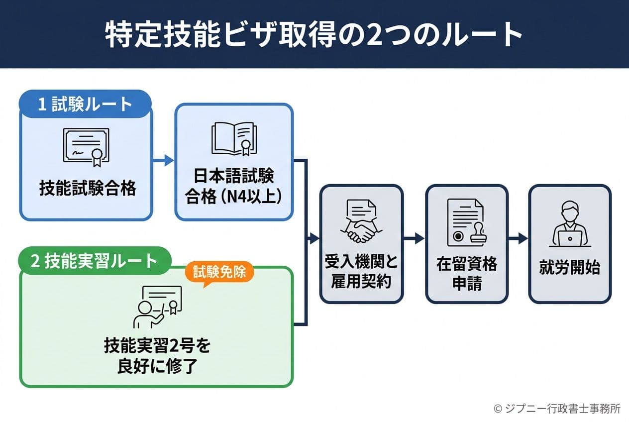 - 取得ルートは「試験ルート」と「技能実習ルート」の2つ
